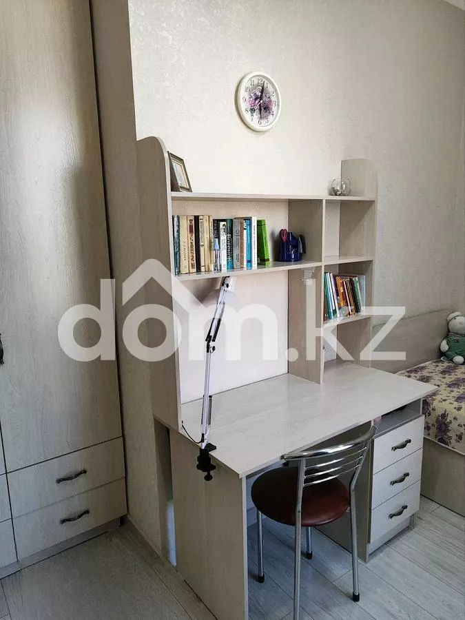 Пластиковые окна, неугловая, встроенная кухня, счётчики, тихий двор. 3-х комнатная квартира с ремонтом. Квартира состоит из детской, спальни и зала совмещенной с кухней площадью19 кв. Квартира очень теплая рядом находятся 60 школа лицей и детский сад Еркетай. В квартире остается вся встроенная корпусная мебель и бытовая техника во всех комнатах.