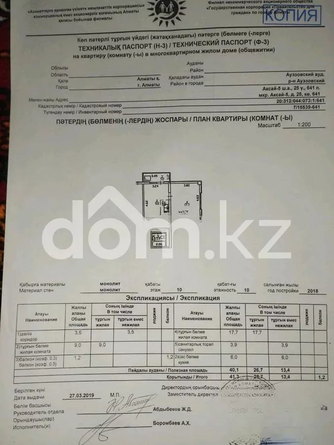 Продажа 1-комнатной квартиры , 42.1 м², г. Алматы, Ауэзовский район, ул. Аксай-5 25