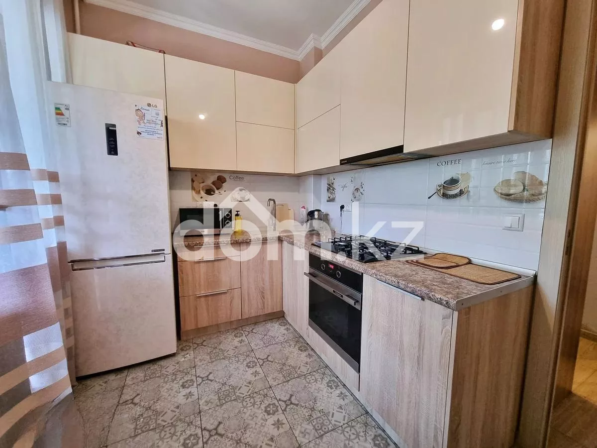 Кондиционер, пластиковые окна, улучшенная, встроенная кухня, новая сантехника, счётчики, тихий двор. Продаётся 1-комнатная квартира в мкр. Мамыр-2 на 3 этаже. 5-этажный панельный дом 158 серии, 1993 года постройки, планировка как в 2-3 комнатных квартирах в 9-этажках, только с 1 комнатой. Квартира просторная, комната 18 кв. м., большая прихожая, кухня 7, 5 кв. м. + лоджия, санузел раздельный. Очень удобное расположение по Шаляпина, посередине между Саина и Момышулы. Рядом имеется вся необходимая инфраструктура: школы, дет. сады, автобусные остановки, метро, ТРЦ, Magnum, Small, строится новое помещение поликлиники. Вокруг дома несколько новых детских площадок. Во дворе много парковочных мест, заезд / выезд во двор на все 4 стороны - Саина / Шаляпина / Момышулы / Абая. Из окон видно горы. Квартира угловая, однако за счёт толщины стен и южной стороны, зимой не холодно. В квартире проведен капитальный ремонт, заменена вся сантехника и электрика. Перепланировки отсутствуют, лоджию оставили как есть, не присоединяли к кухне. Установлены пластиковые окна под цвет дерева. На полу уложен качественный ламинат с фаской, в кухне, прихожей и санузлах - кафель. Электрика сделана грамотно: в прихожей и в комнате установлены проходные выключатели, в ванной и туалете отдельные выключатели под вытяжки, по всей квартире достаточное количество розеток, для каждого электроприбора, ТВ и интернет кабель выведены к зоне телевизора, электрический щиток в квартире имеет отдельные автоматы на каждую группу розеток или зону освещения. Имеется кондиционер. Квартира идеально подходит для проживания небольшой семьи. Почти вся мебель и бытовая техника остается. Продажа в связи с расширением. Внимание! Объявление подается от хозяина, приобретая данную недвижимость Вы не оплачиваете комиссию риелторам. Для риелторов прошу читать внимательно: с агентствами не работаем, Вы имеете возможность просматривать квартиру только вместе с потенциальным покупателем, никакие комиссии мы не оплачиваем. С реальными покупателями адекватный торг только при просмотре. Возможна ипотека.