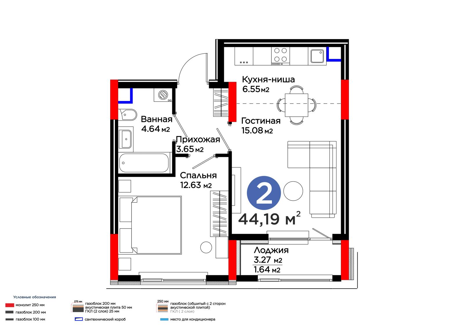 Площадь 44.19 м²
