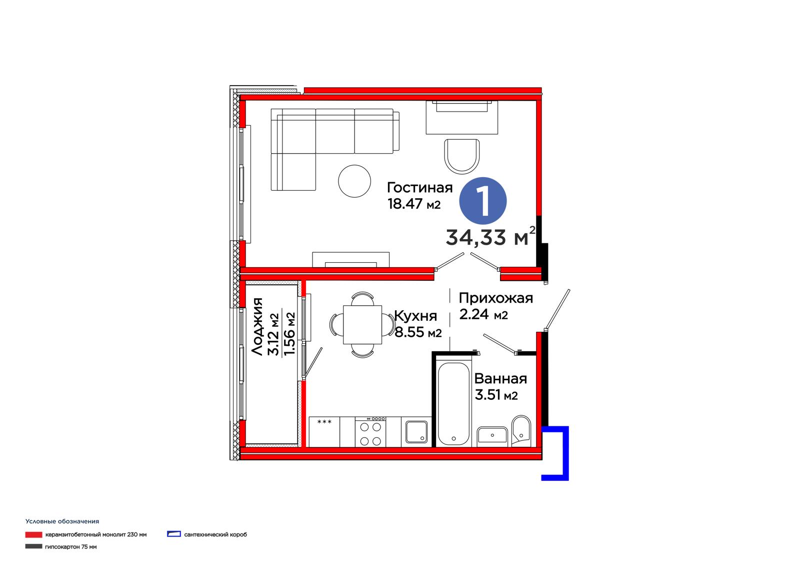 Продажа 1-комнатной квартиры в ЖК Arena Lite, 34.33 м², г. Астана, Есильский район, ул. Туран