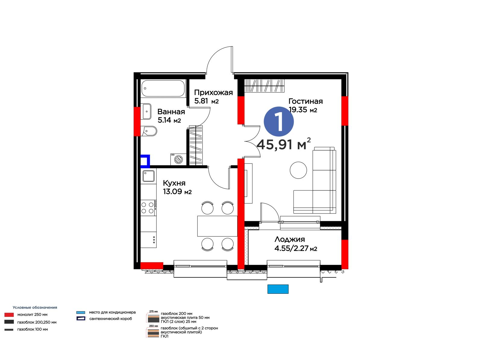 Продажа 1-комнатной квартиры в ЖК GreenLine.Headliner Exclusive, 45.91 м², г. Астана, Есильский район, ул. Толе би