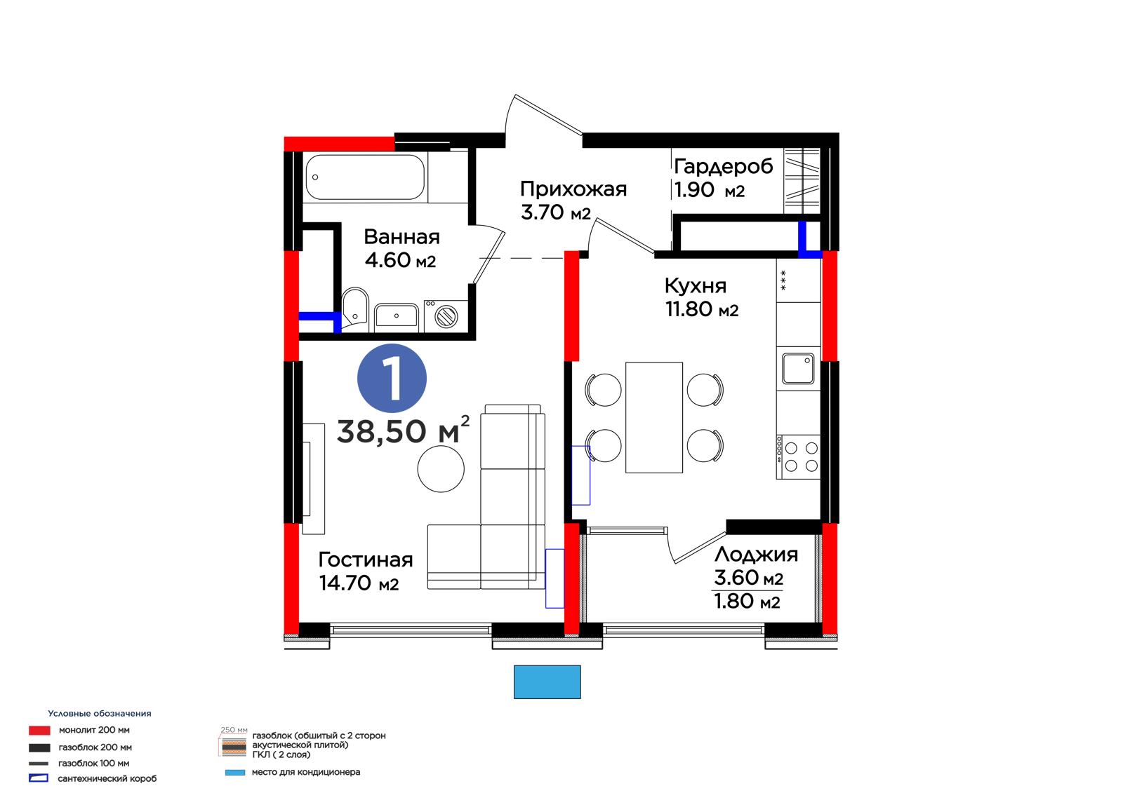 Продажа 1-комнатной квартиры в ЖК Urban Hills, 38.5 м², г. Шымкент, ул. Аргынбекова