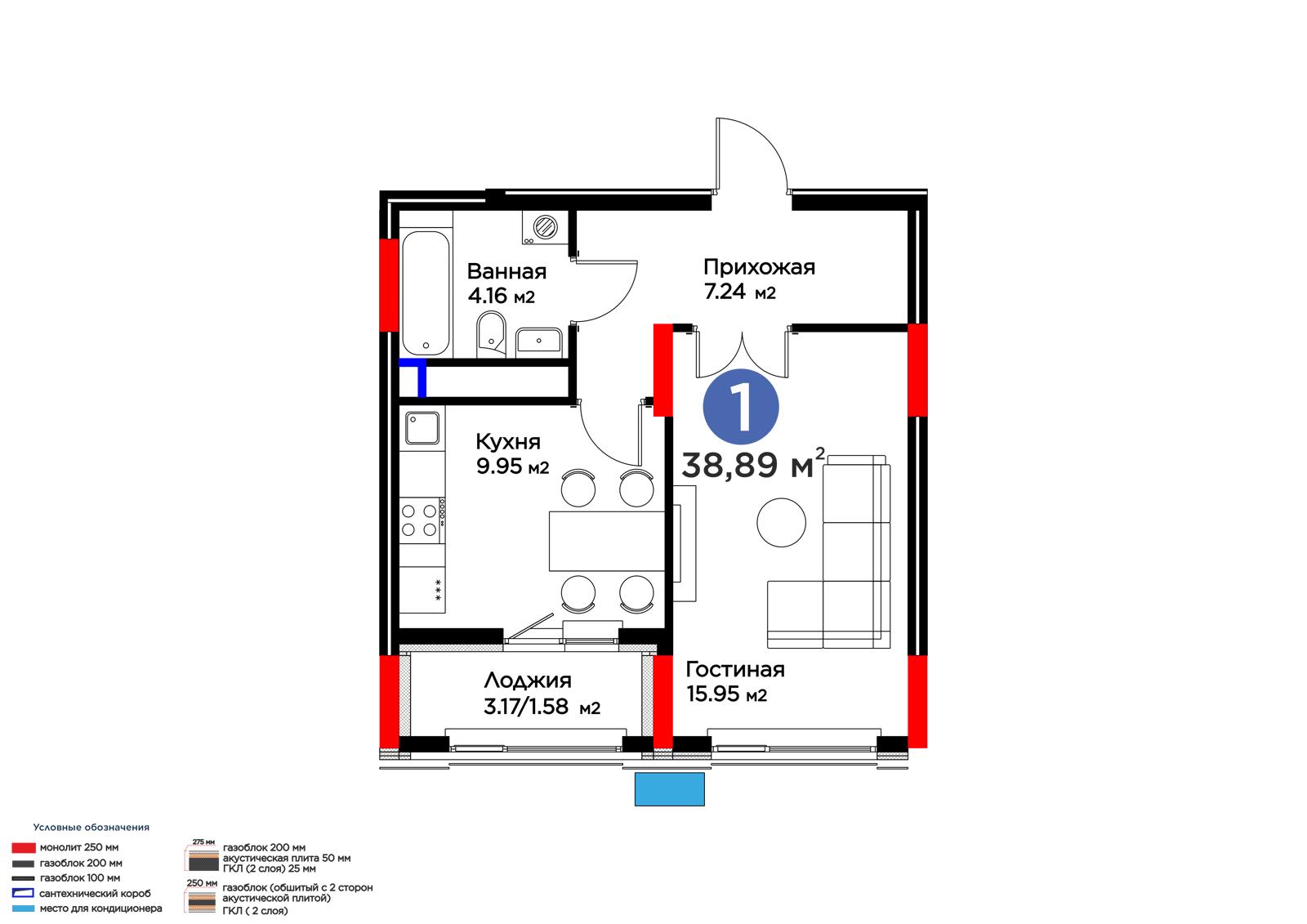 Продажа 1-комнатной квартиры в ЖК Capital Park. Emotions, 38.89 м², г. Астана, Есильский район, ул. Бухар жырау 33