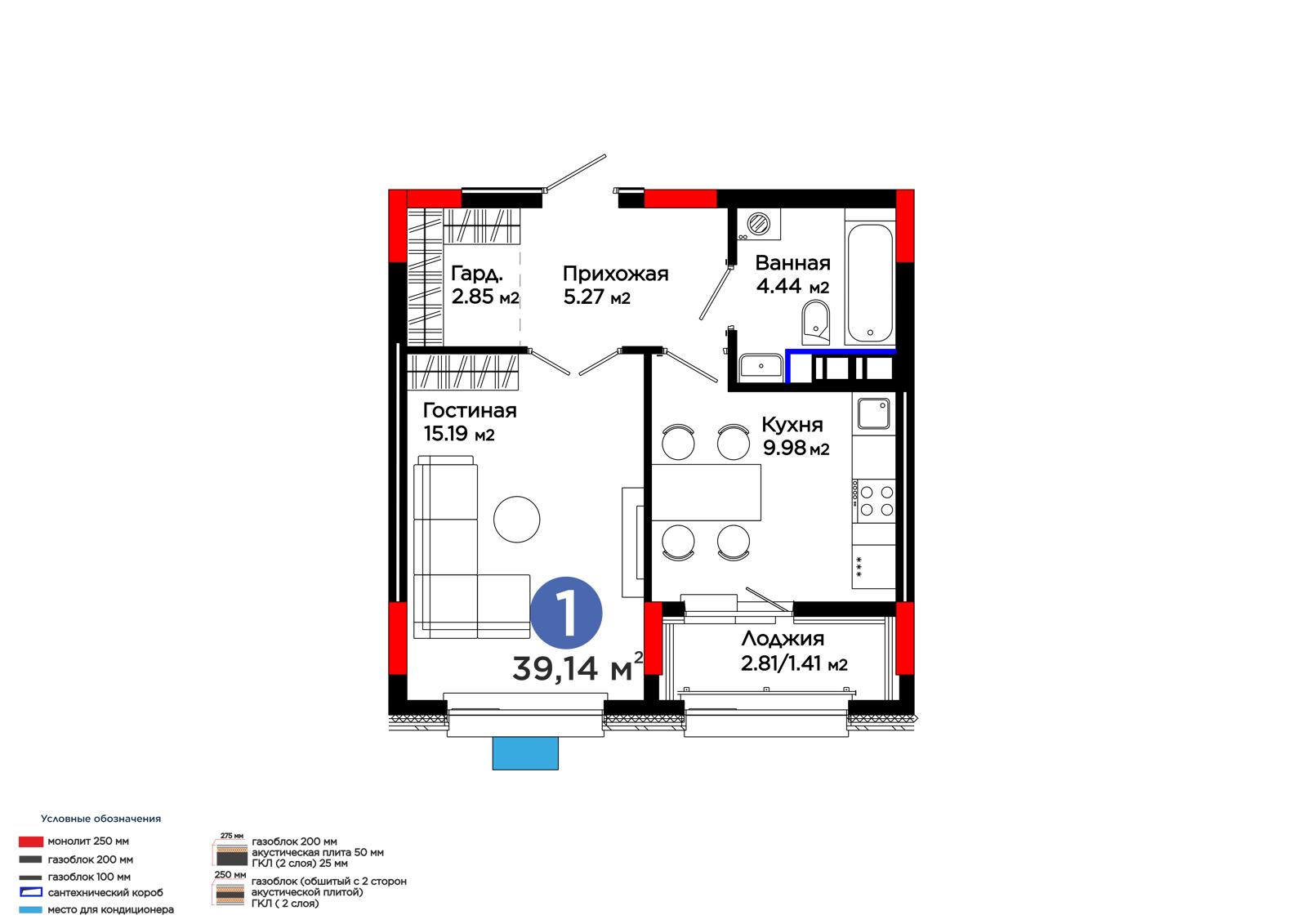 Площадь 39.14 м²