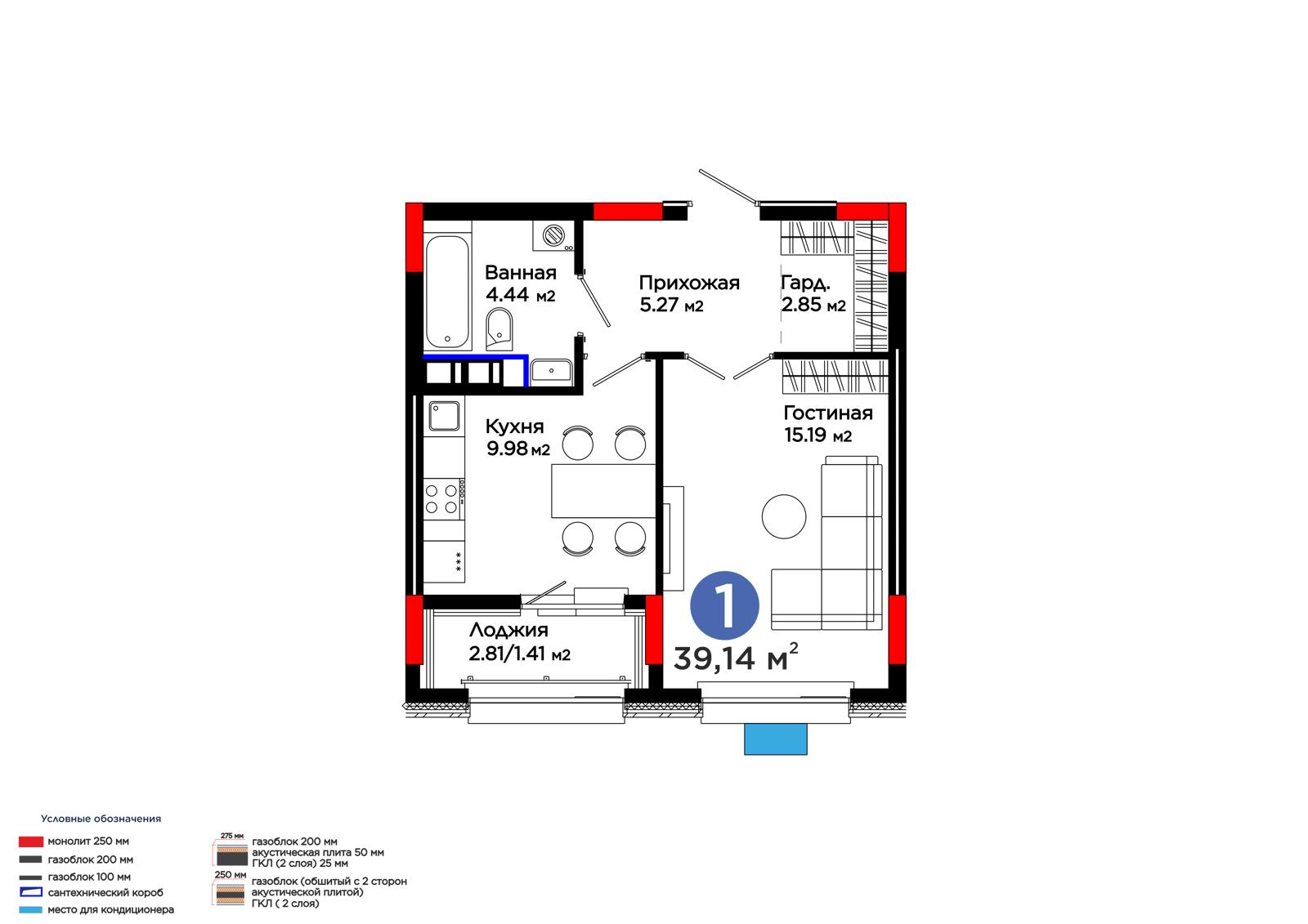 Продажа 1-комнатной квартиры в ЖК Aisar, 39.14 м², г. Астана, Есильский район, ул. Кабанбай батыра 6