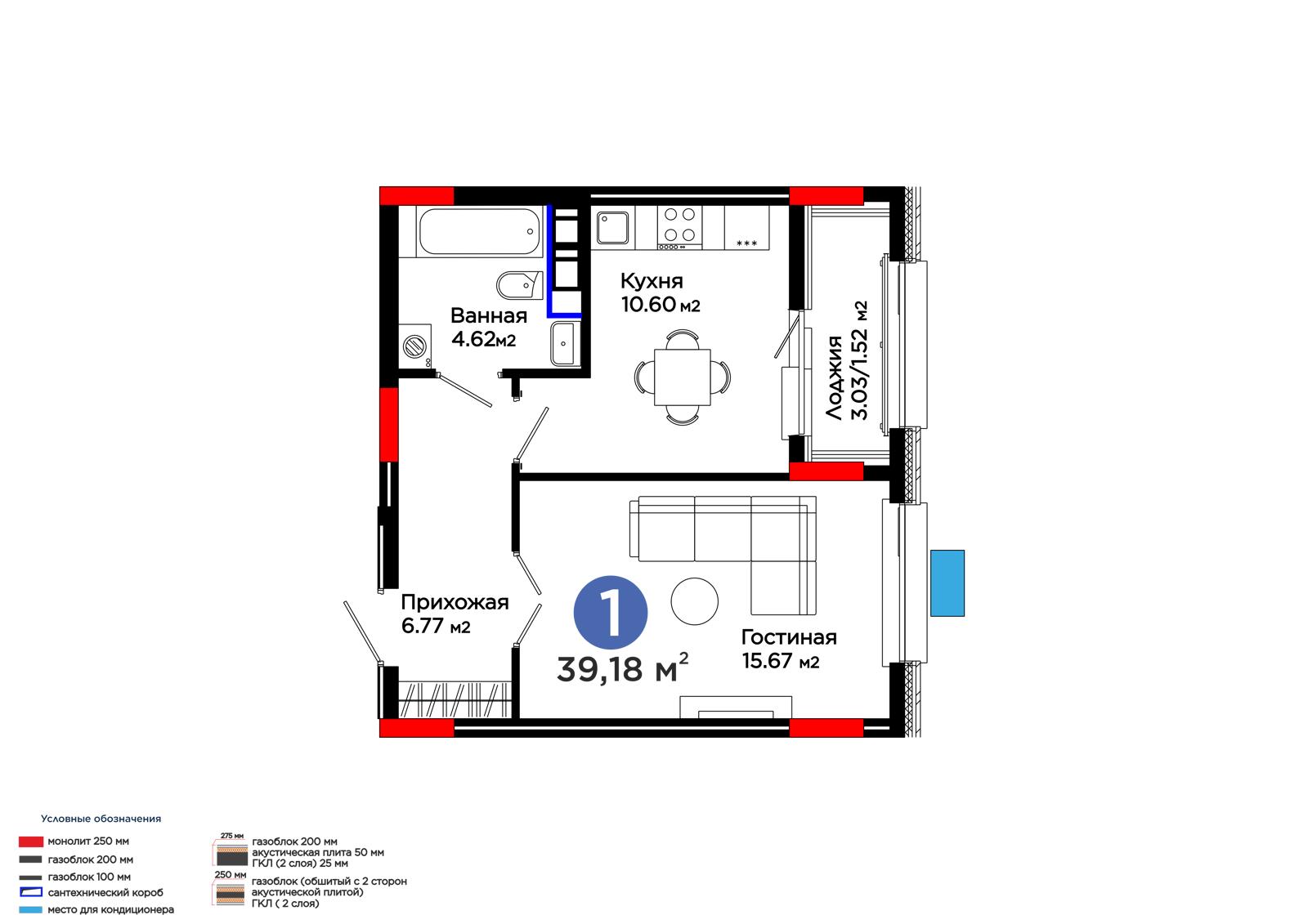 Площадь 39.18 м²
