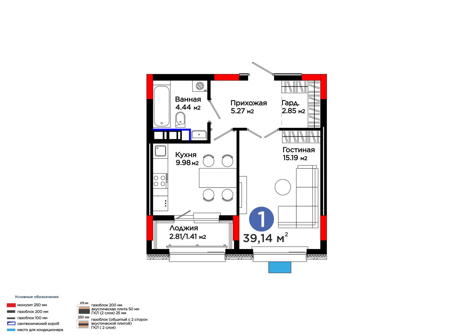 Продажа 1-комнатной квартиры в ЖК Aisar, 39.14 м², г. Астана, Есильский район, ул. Кабанбай батыра 6