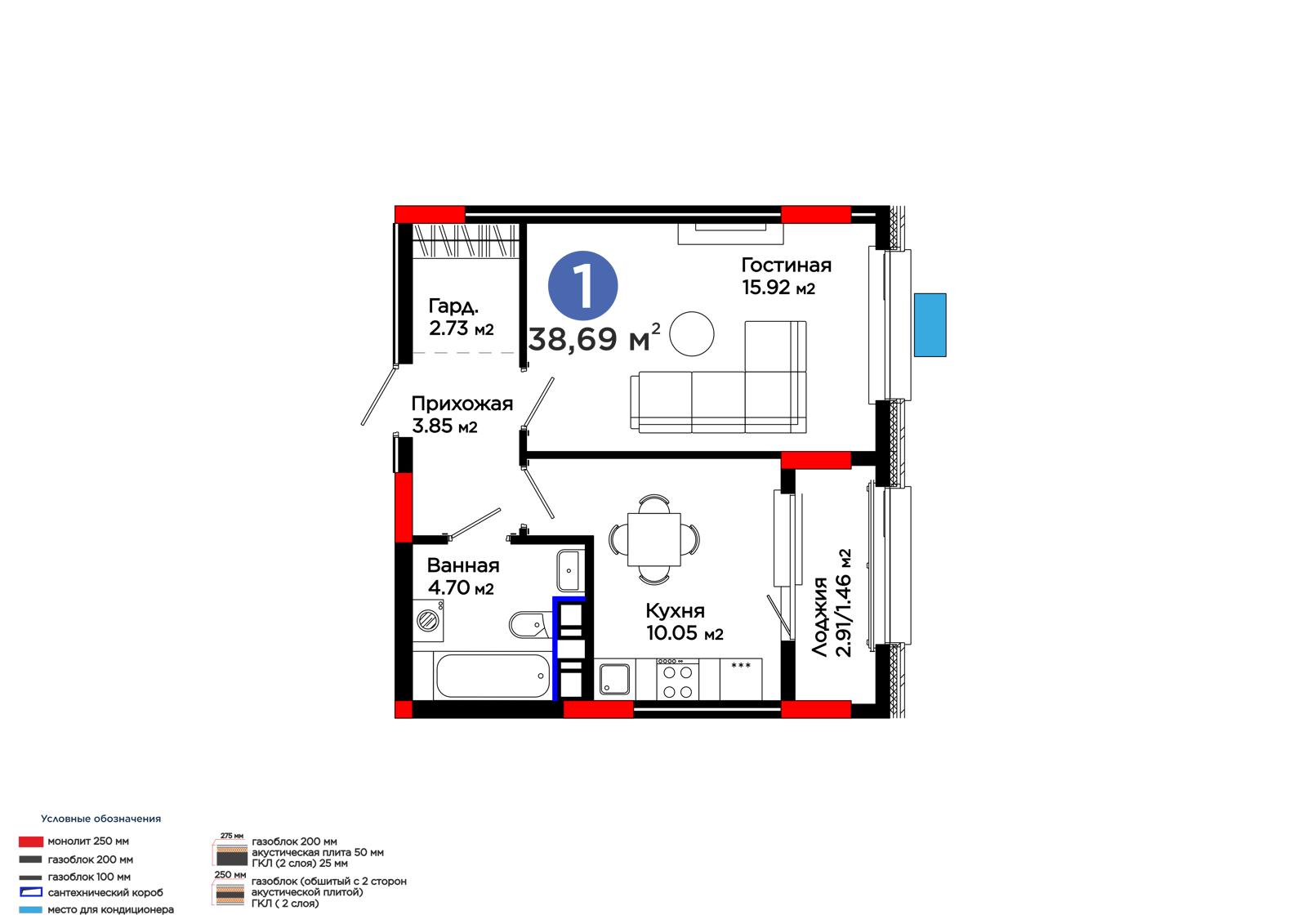 Продажа 1-комнатной квартиры в ЖК Aisar, 38.69 м², г. Астана, Есильский район, ул. Кабанбай батыра 6