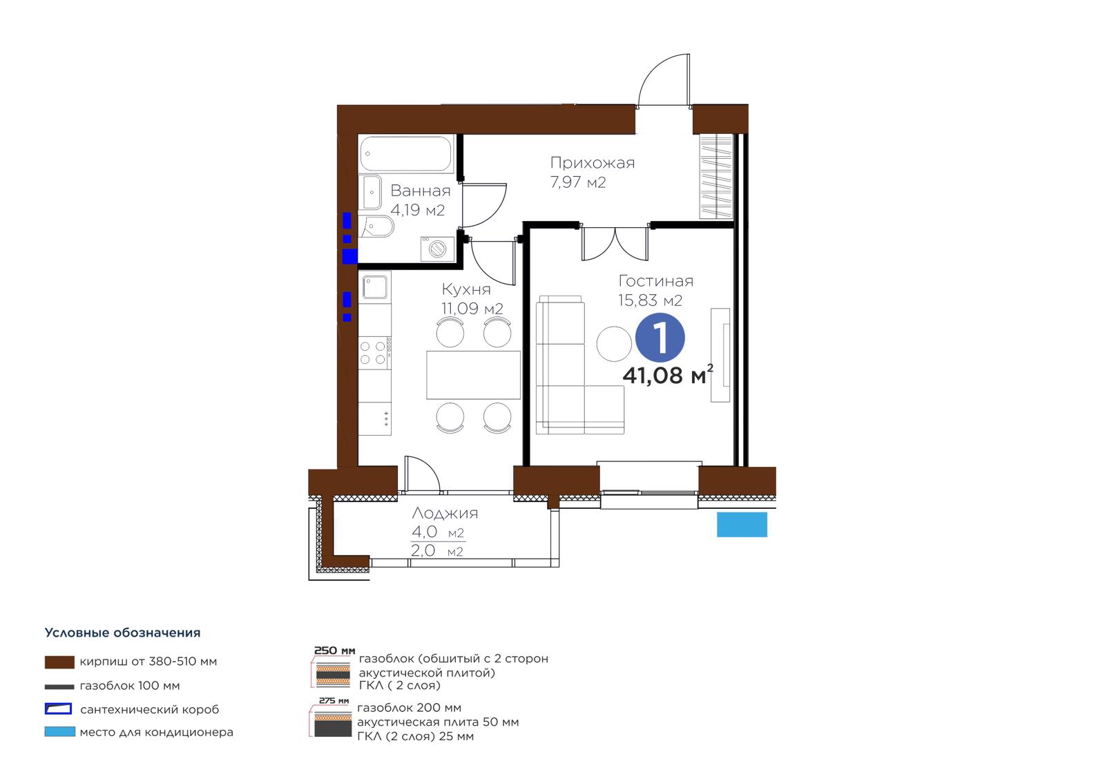 Площадь 41.08 м²