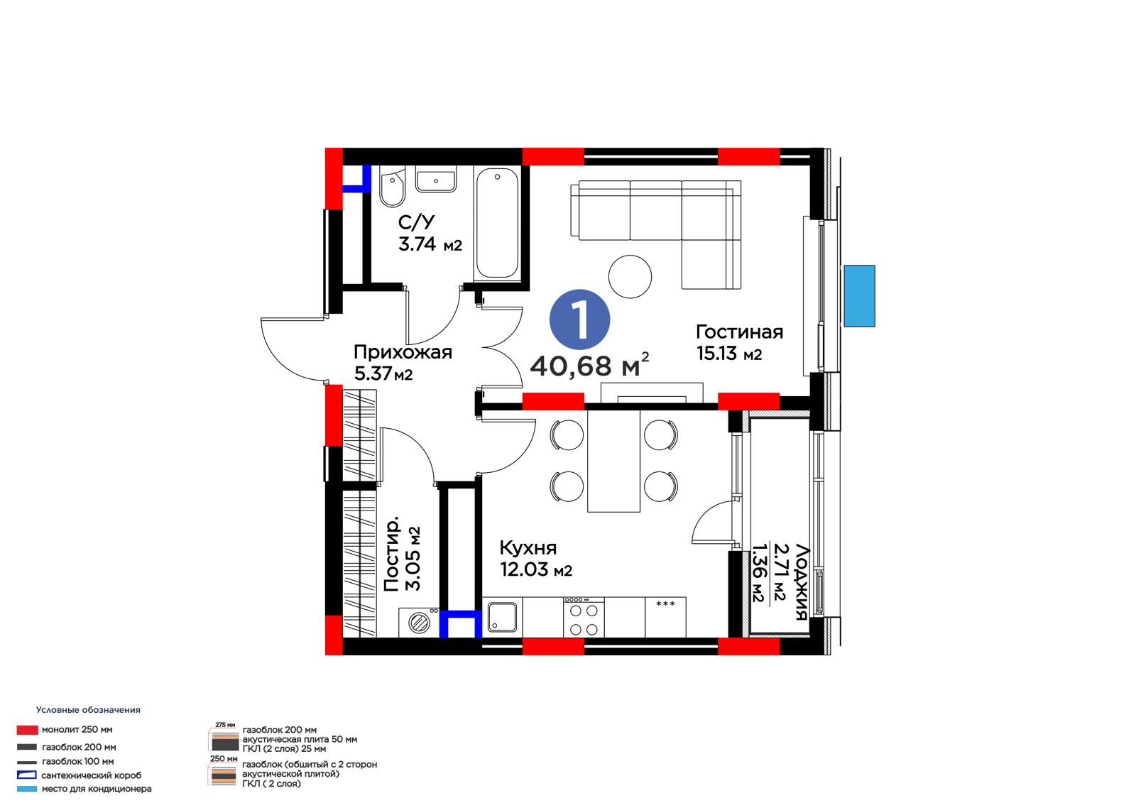 Продажа 1-комнатной квартиры в ЖК Capital Park. Melody, 40.68 м², г. Астана, Есильский район, ул. Бухар жырау