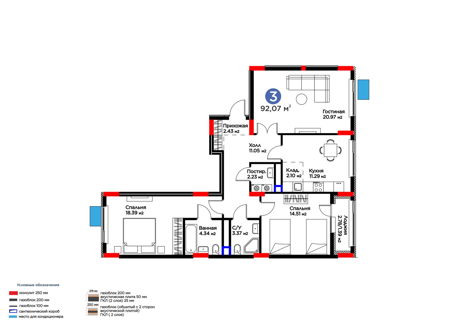Продажа 3-комнатной квартиры в ЖК Auez, 92.07 м², г. Астана, ул. Ш. Калдаякова