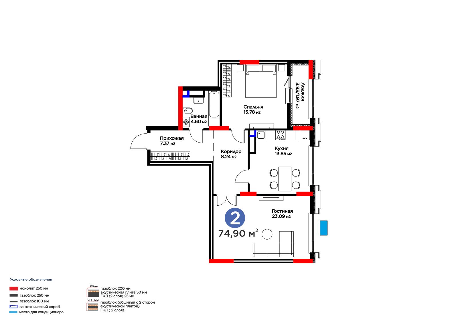 Продажа 2-комнатной квартиры в ЖК Capital Park. Art, 74.9 м², г. Астана, ул. Акжол