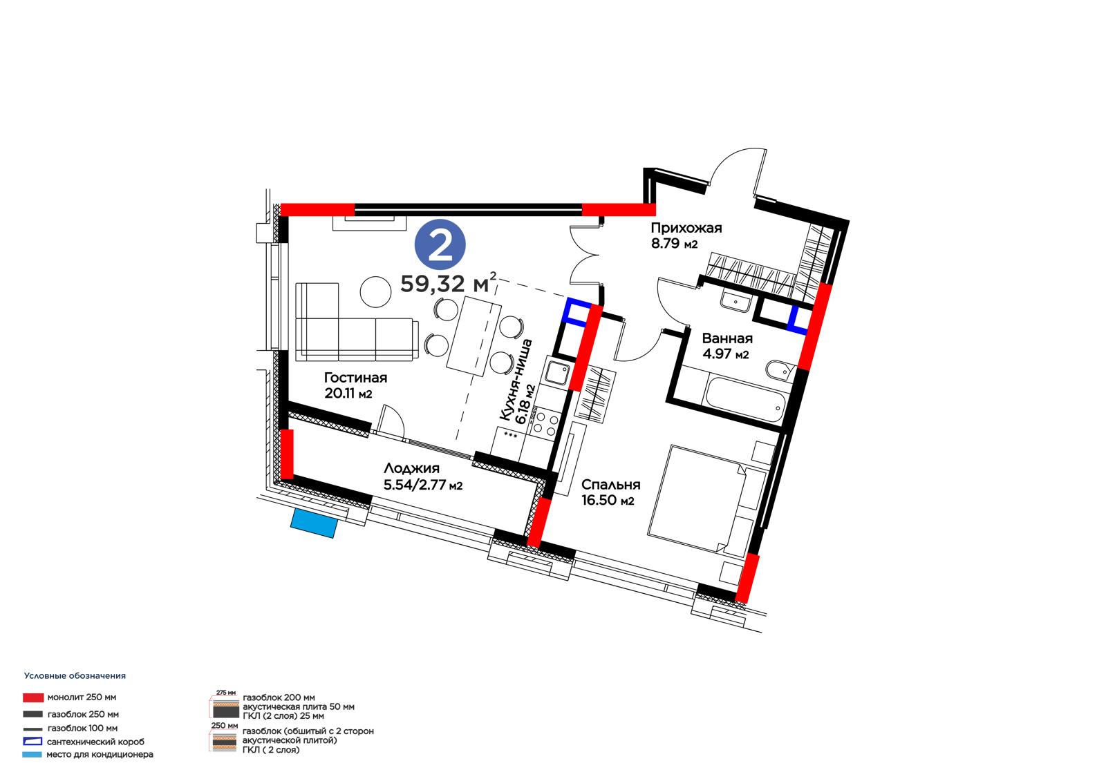 Продажа 2-комнатной квартиры в ЖК Capital Park. Art, 59.32 м², г. Астана, ул. Акжол