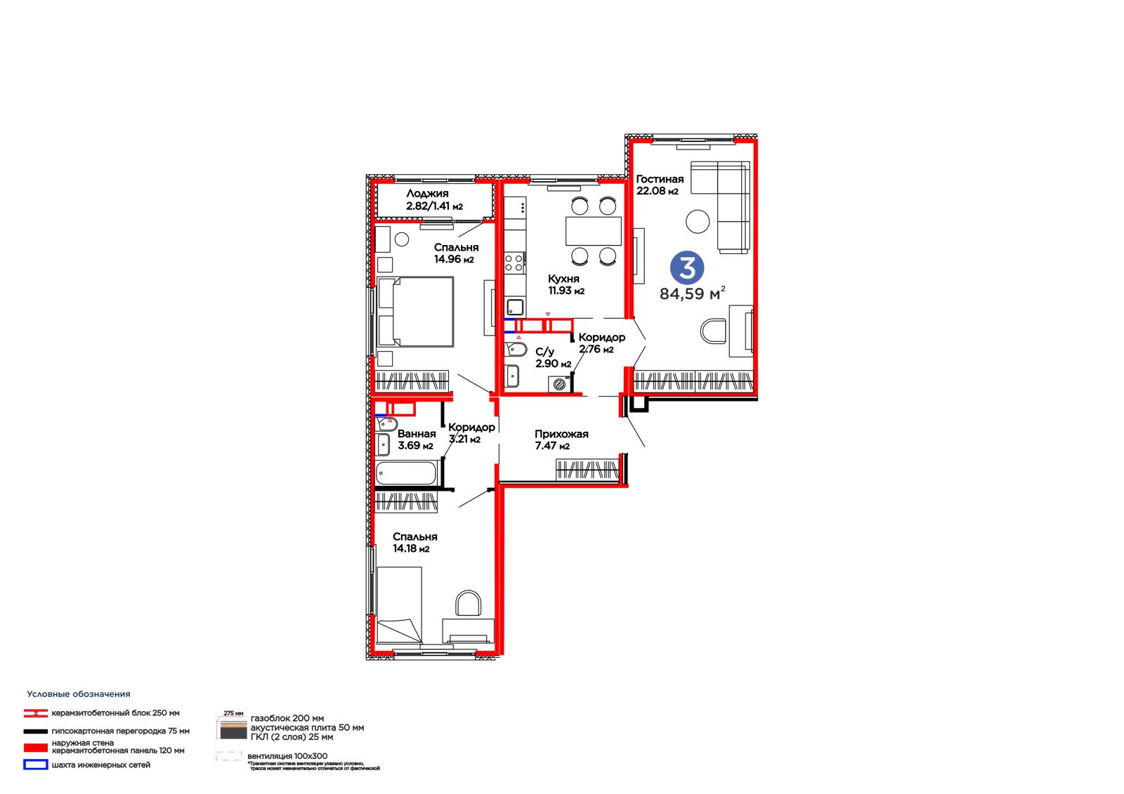 Продажа 3-комнатной квартиры в ЖК ŪIA.DARYN, 84.59 м², г. Астана, ул. Улы дала