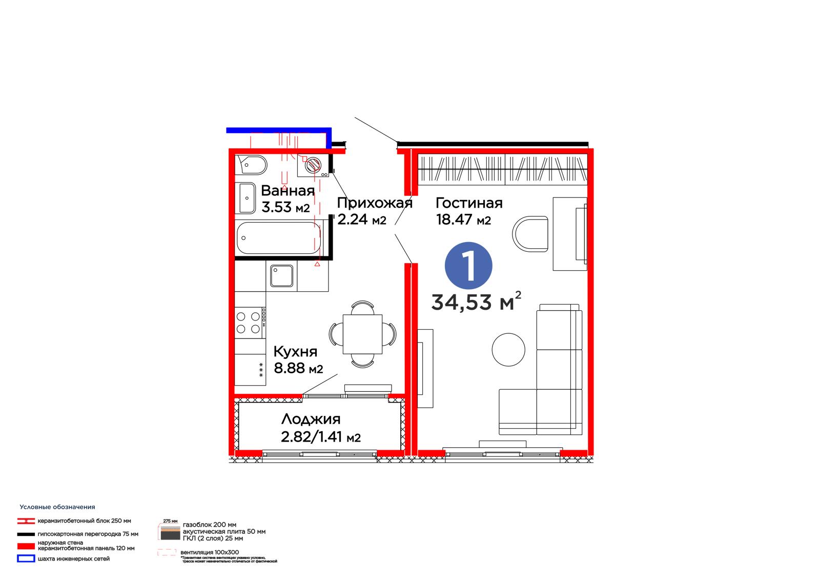 Продажа 1-комнатной квартиры в ЖК ŪIA.DARYN, 34.53 м², г. Астана, ул. Улы дала