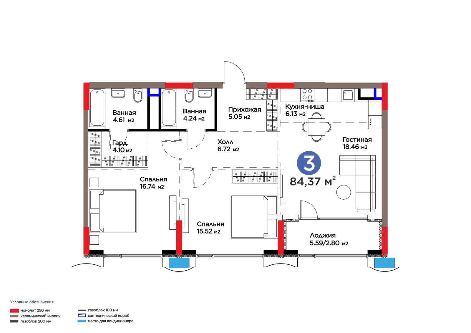 Площадь 84.37 м²