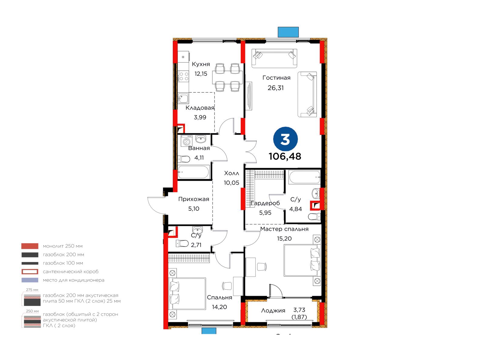 Продажа 3-комнатной квартиры в ЖК Auez Park, 106.48 м², г. Астана, ул. Ш. Калдаякова