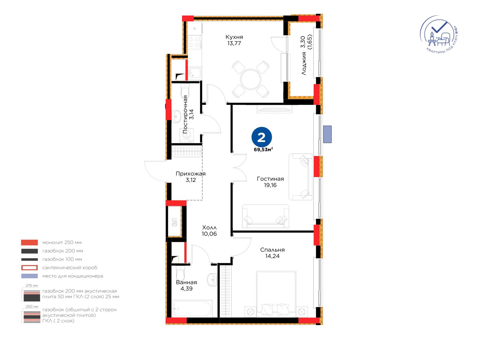 Продажа 2-комнатной квартиры в ЖК Auez Park, 69.53 м², г. Астана, ул. Ш. Калдаякова