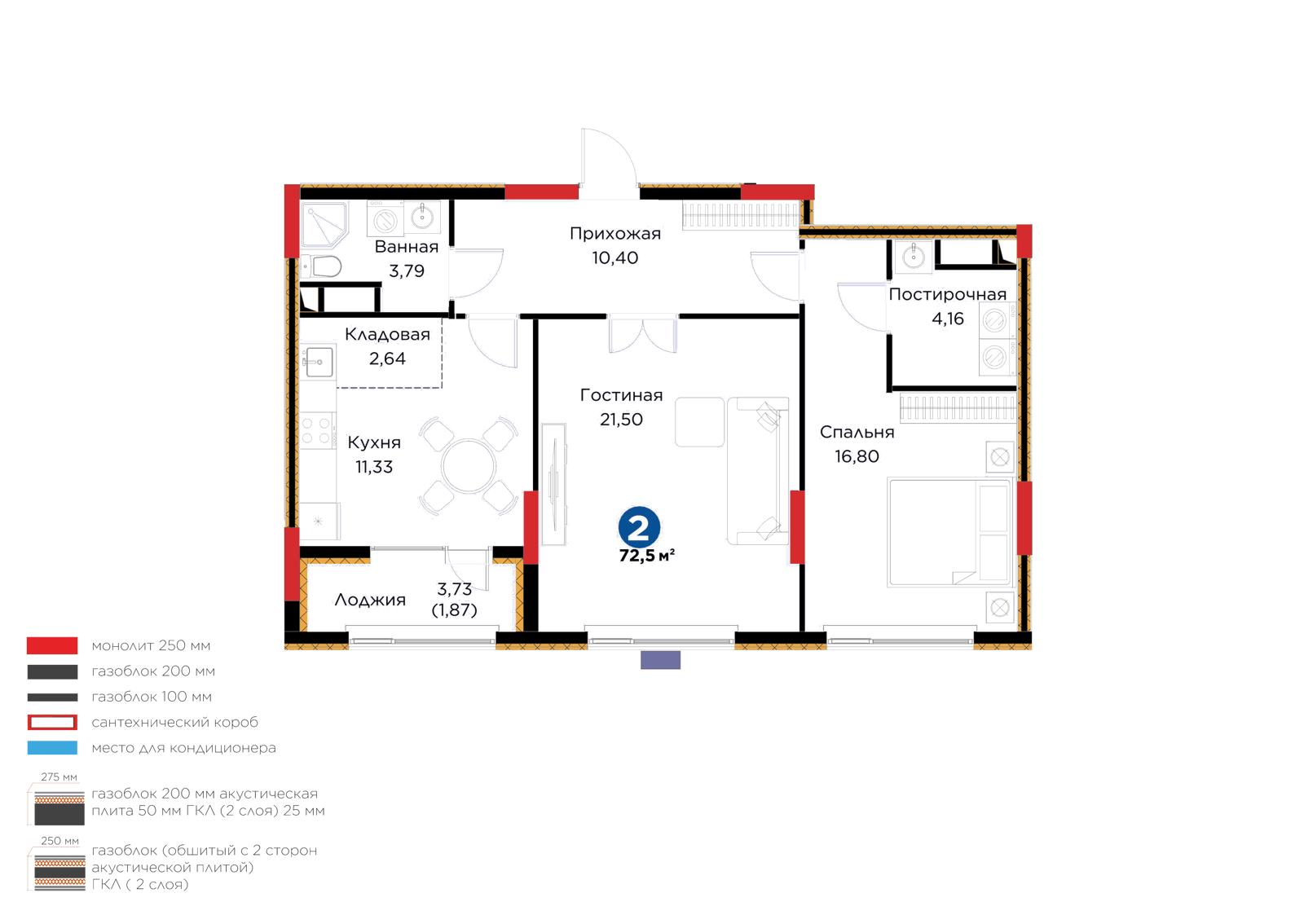 Площадь 72.5 м²