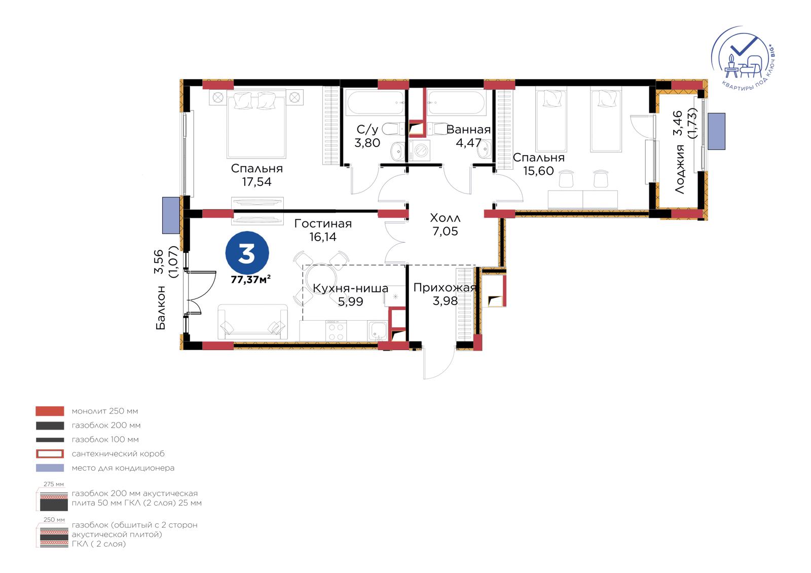 Продажа 3-комнатной квартиры в ЖК Auez Park, 77.37 м², г. Астана, ул. Ш. Калдаякова