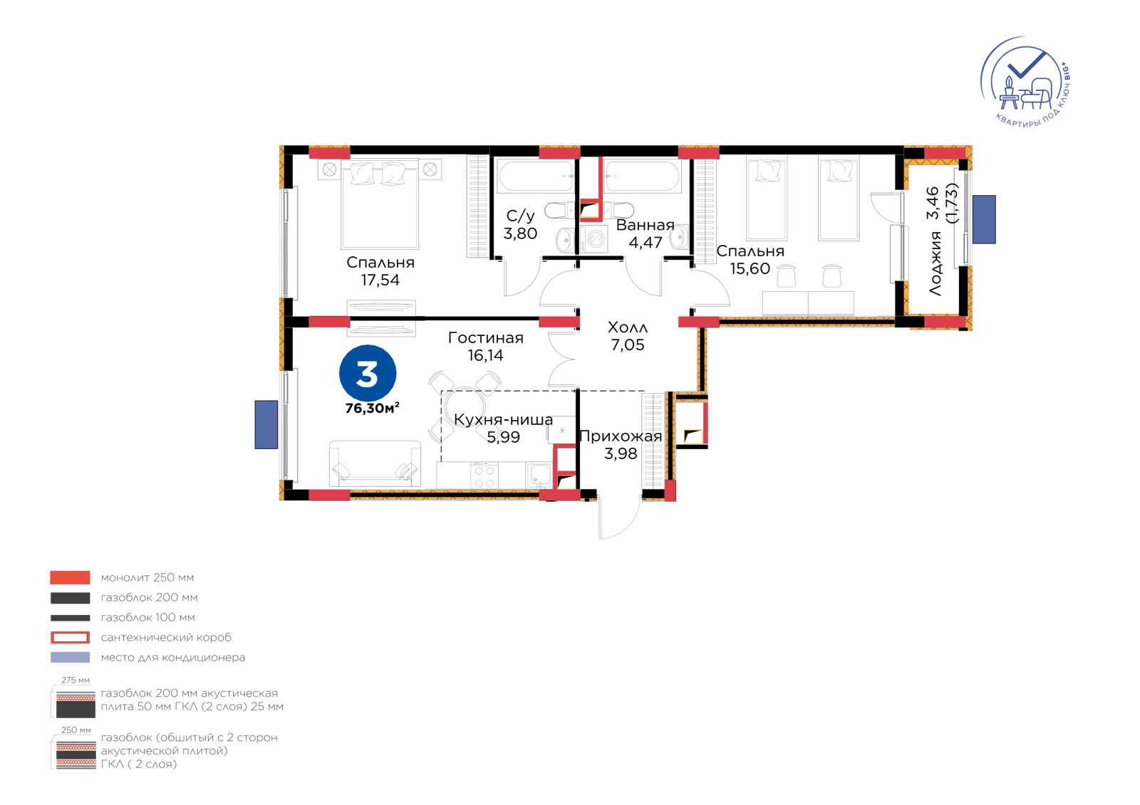 Продажа 3-комнатной квартиры в ЖК Auez Park, 76.3 м², г. Астана, ул. Ш. Калдаякова