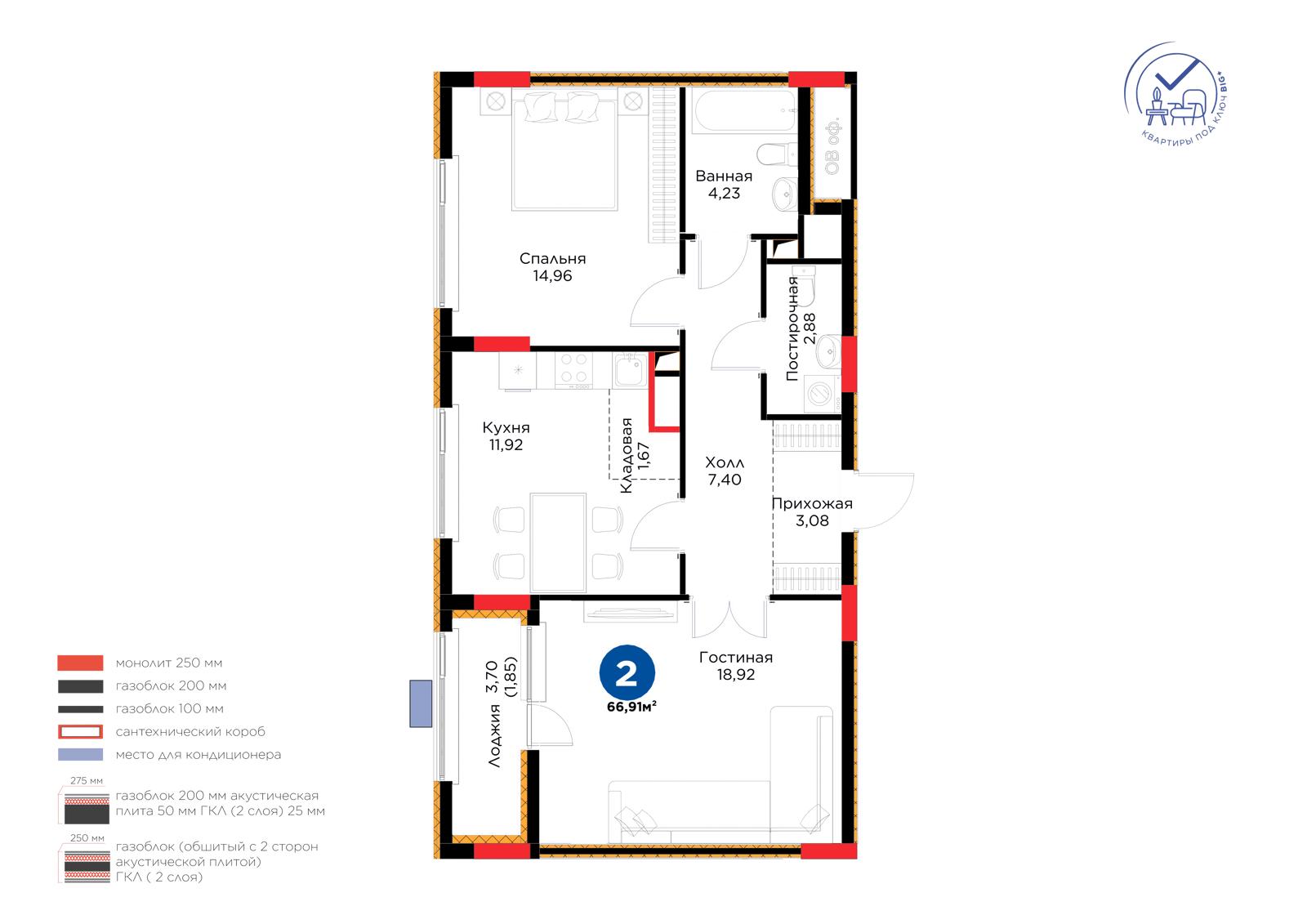 Площадь 66.91 м²