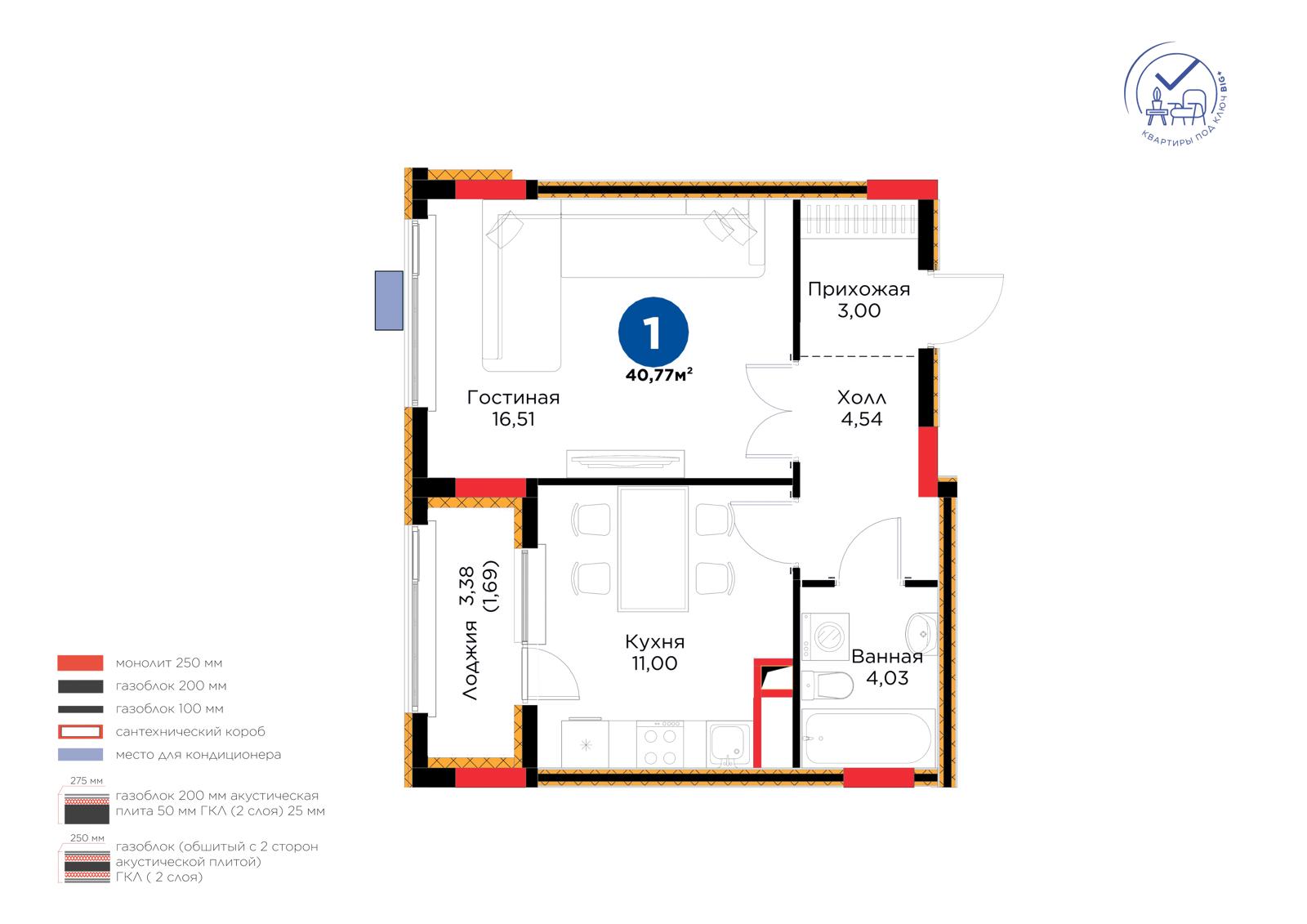 Площадь 40.77 м²