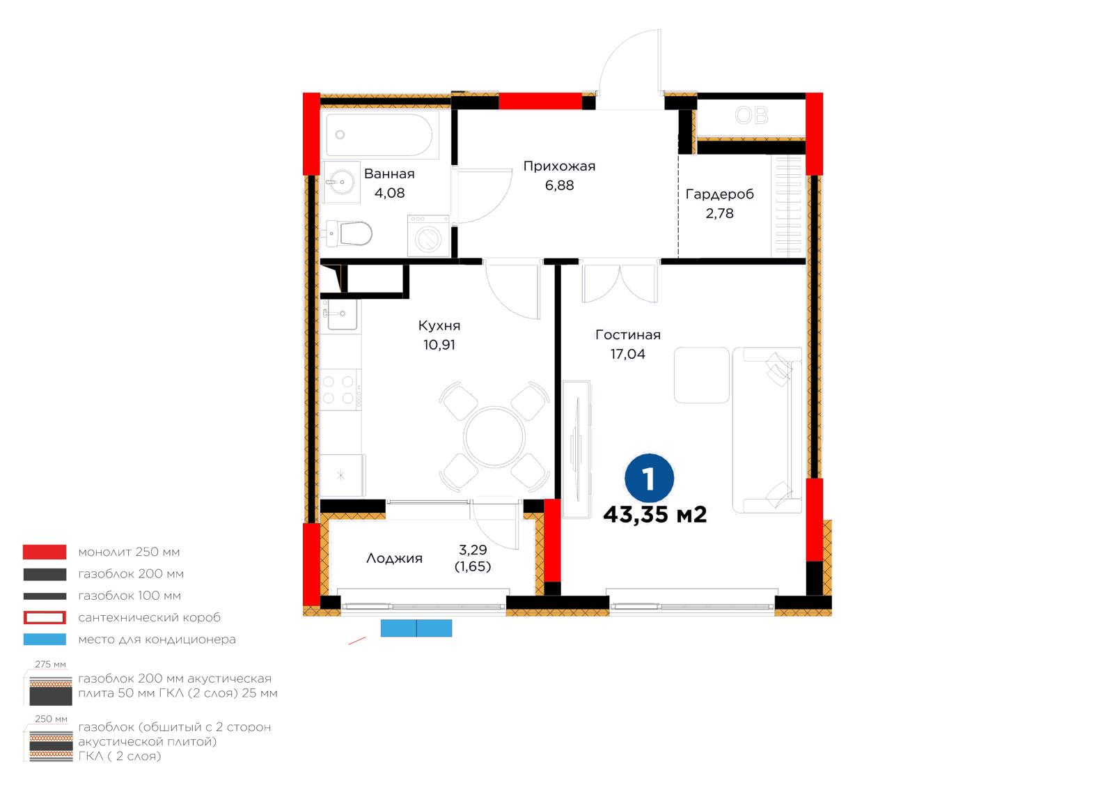 Продажа 1-комнатной квартиры в ЖК Auez Park, 43.35 м², г. Астана, ул. Ш. Калдаякова