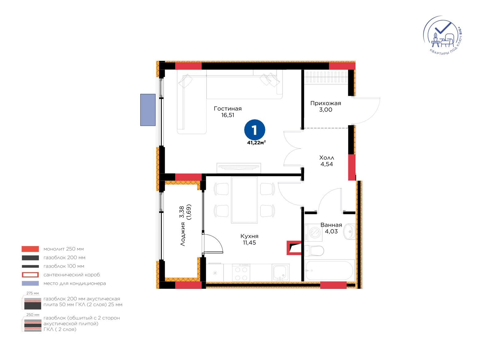 Продажа 1-комнатной квартиры в ЖК Auez Park, 41.22 м², г. Астана, ул. Ш. Калдаякова