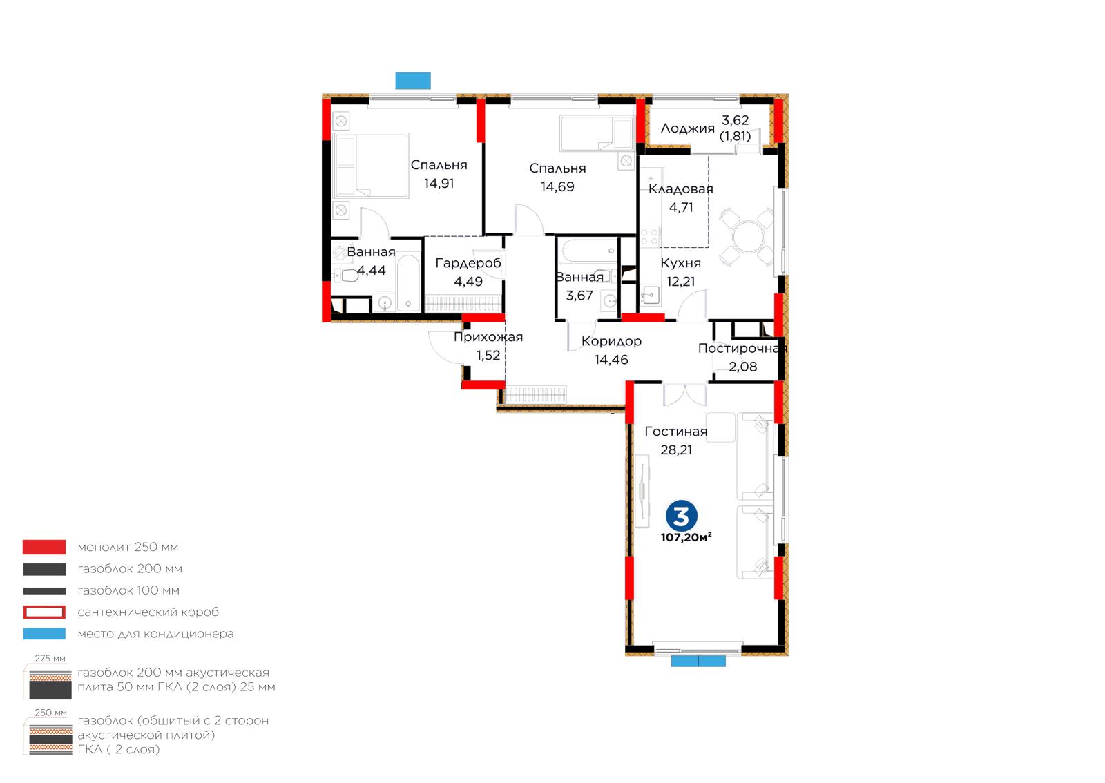 Площадь 107.2 м²