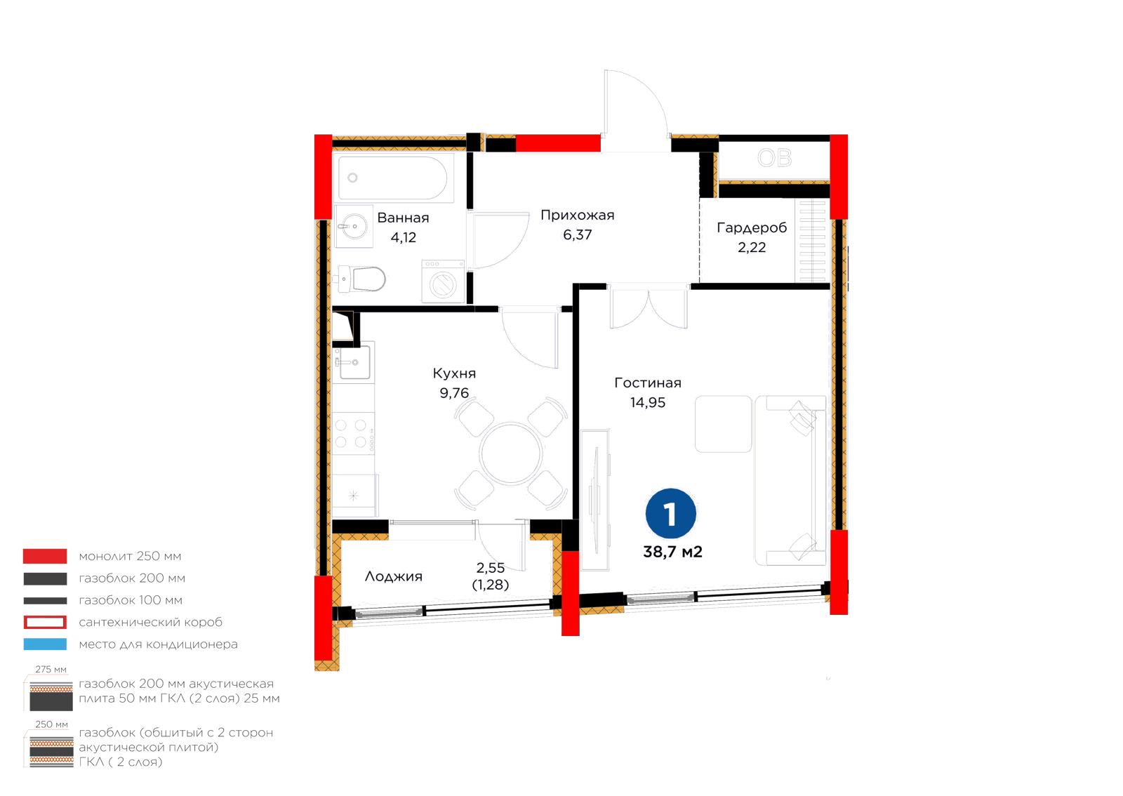 Площадь 38.7 м²