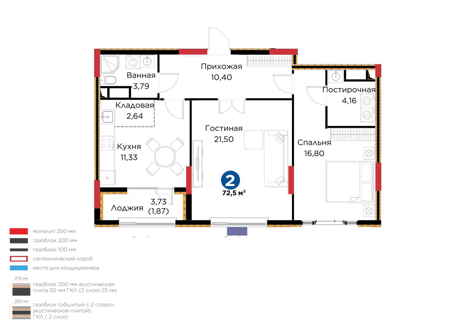 Площадь 72.5 м²