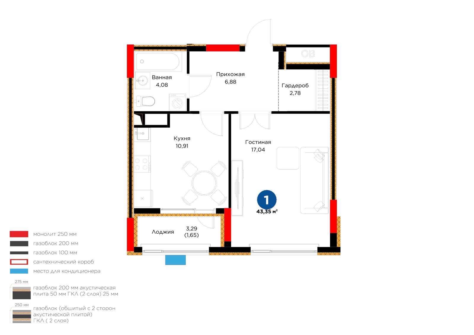 Продажа 1-комнатной квартиры в ЖК Auez Park, 43.35 м², г. Астана, ул. Ш. Калдаякова