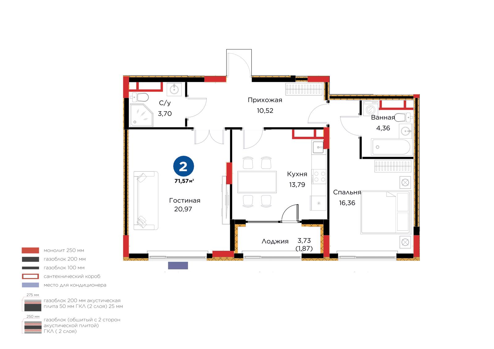 Площадь 71.57 м²