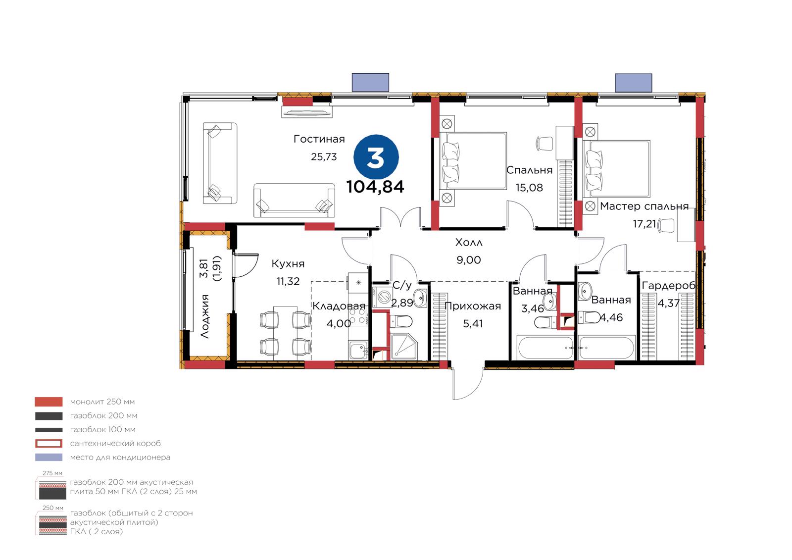 Продажа 3-комнатной квартиры в ЖК Auez Park, 104.84 м², г. Астана, ул. Ш. Калдаякова