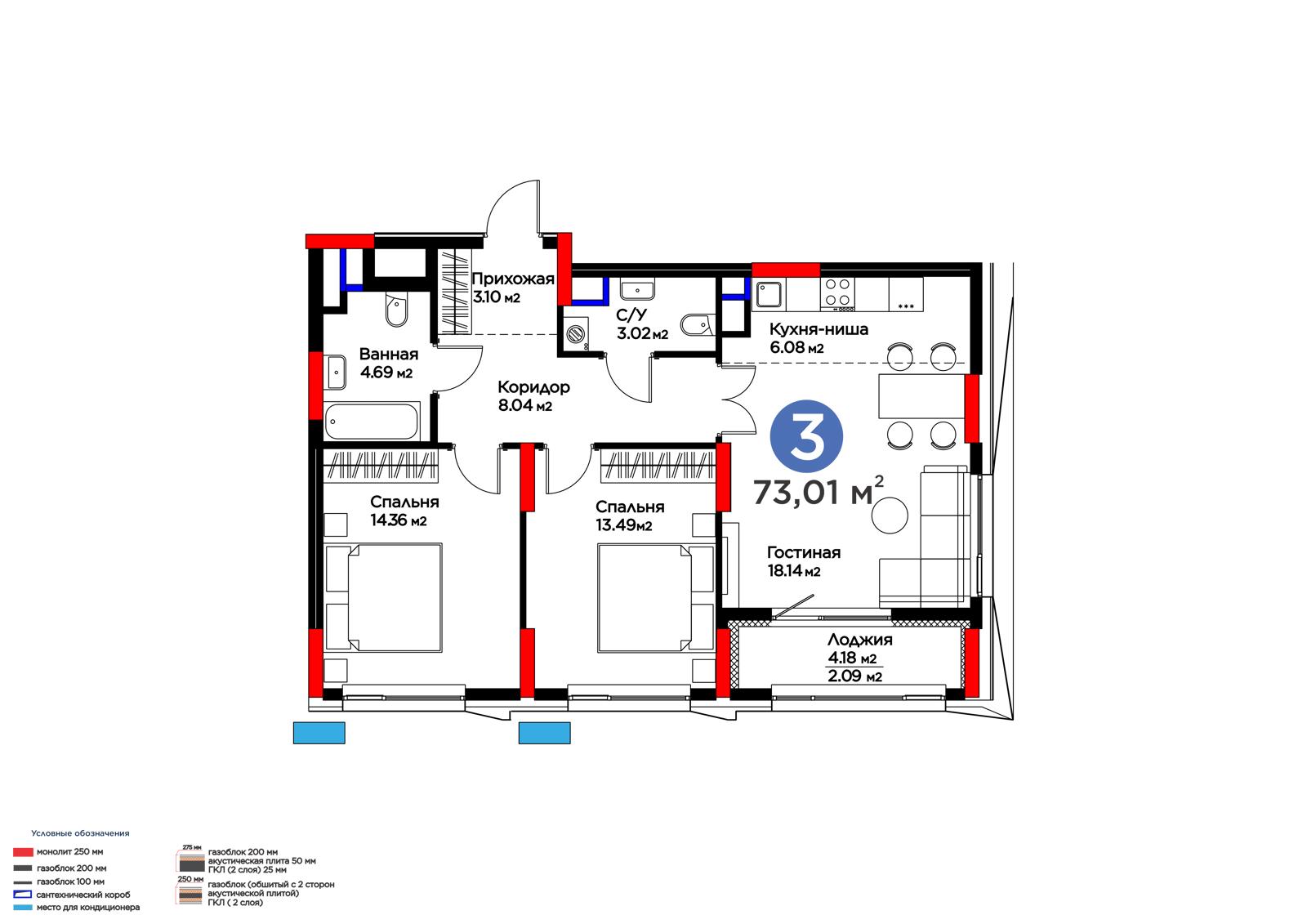 Площадь 73.01 м²