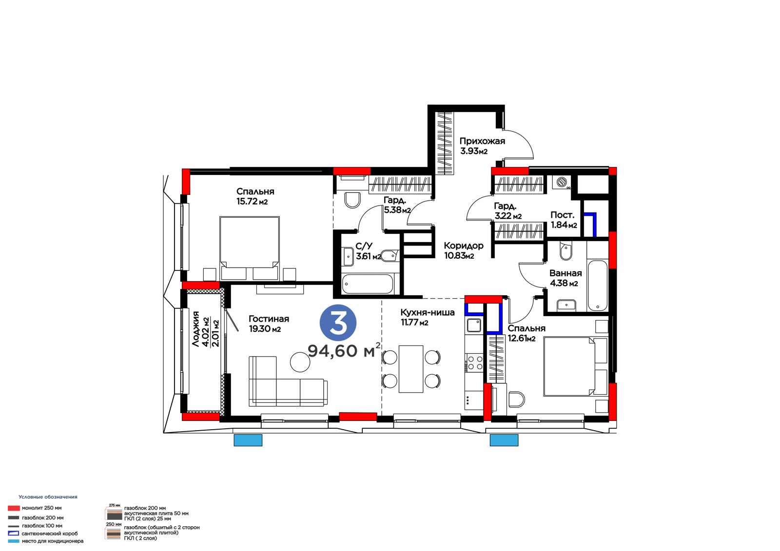 Площадь 94.6 м²