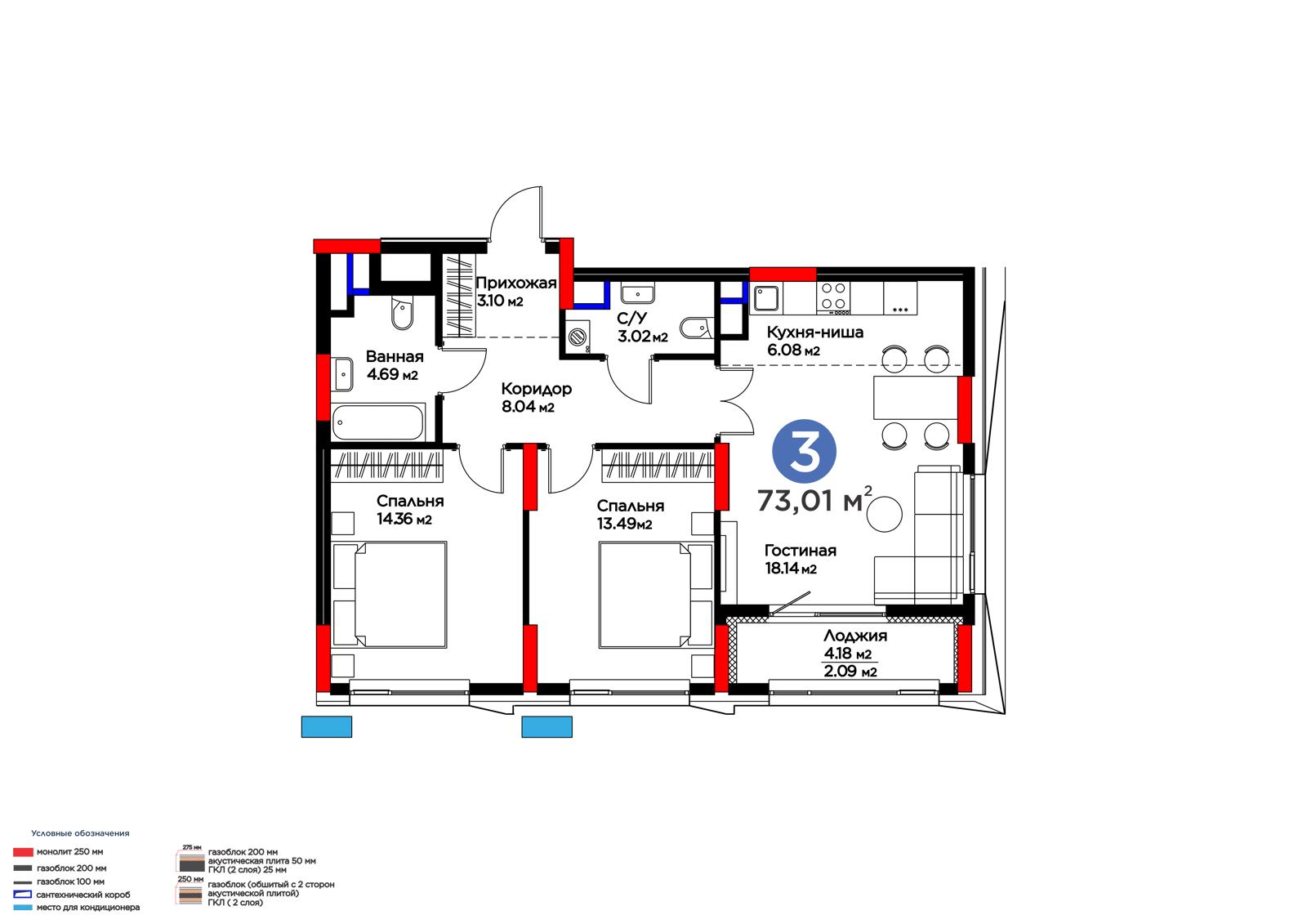 Площадь 73.01 м²