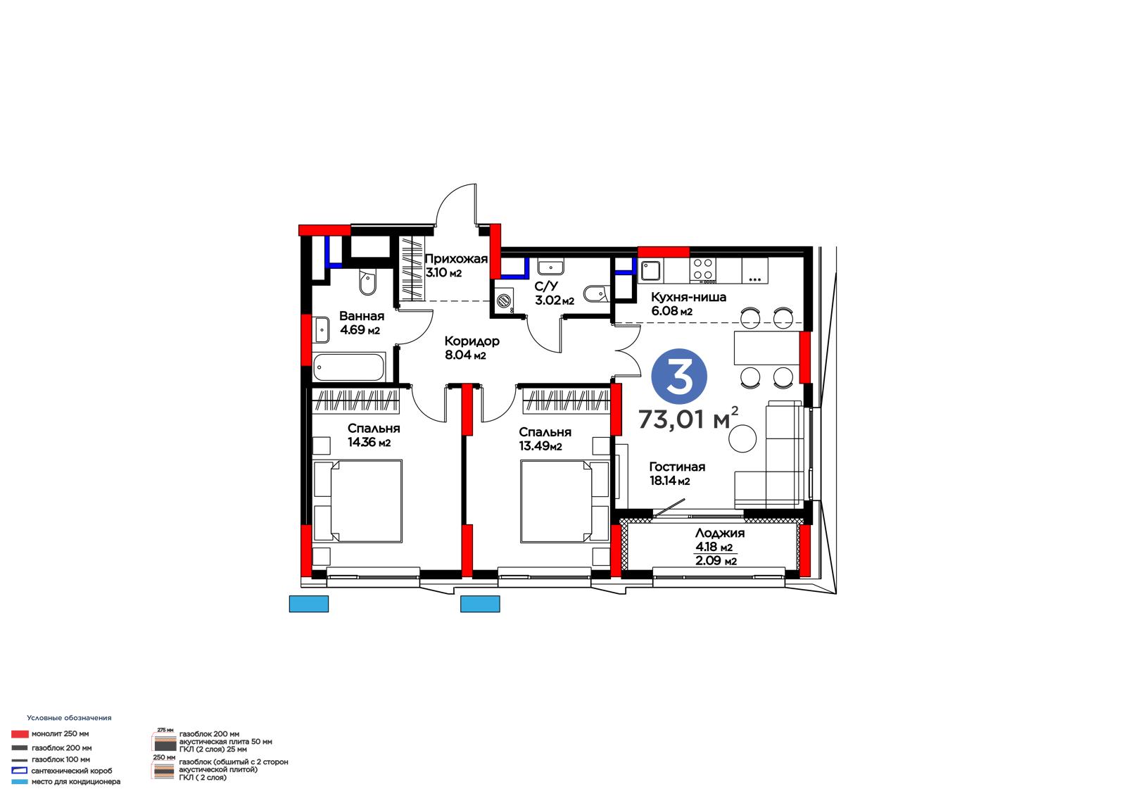 Продажа 3-комнатной квартиры , 73.01 м², г. Астана, ул. Хусейн бен Талал (31-я)