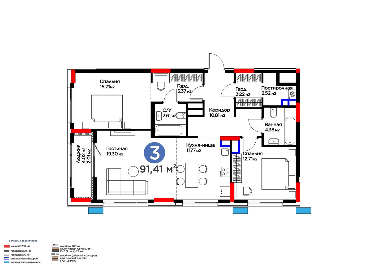 Площадь 91.41 м²