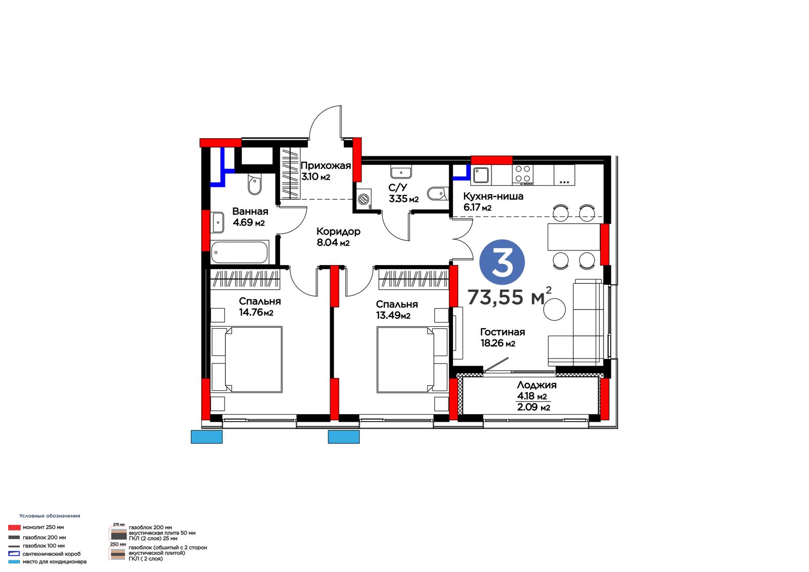 Площадь 73.55 м²