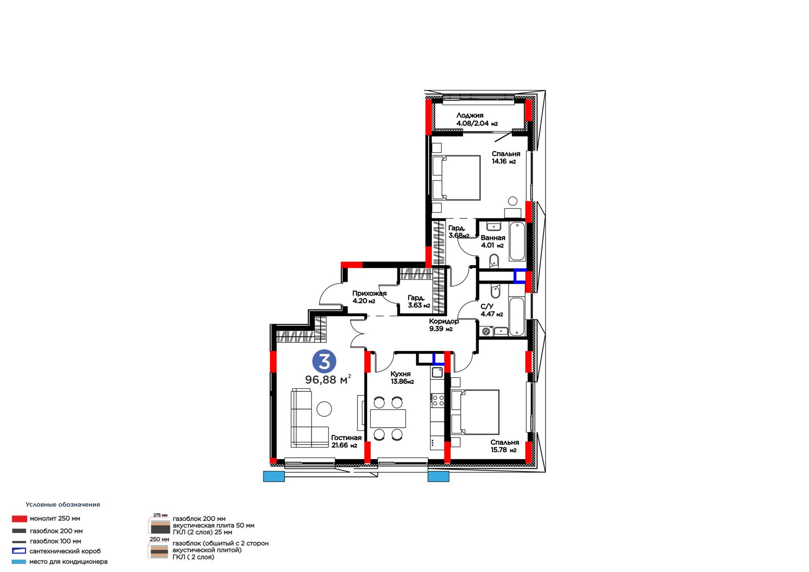 Продажа 3-комнатной квартиры в ЖК MOD Ultra, 96.88 м², г. Астана, ул. Хусейн бен Талал (31-я)