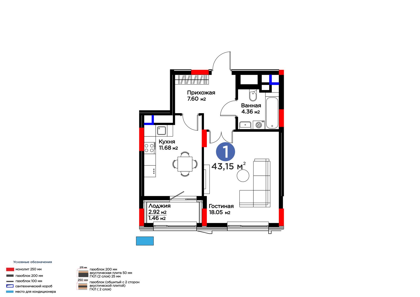 Продажа 1-комнатной квартиры в ЖК MOD Ultra, 43.15 м², г. Астана, ул. Хусейн бен Талал (31-я)