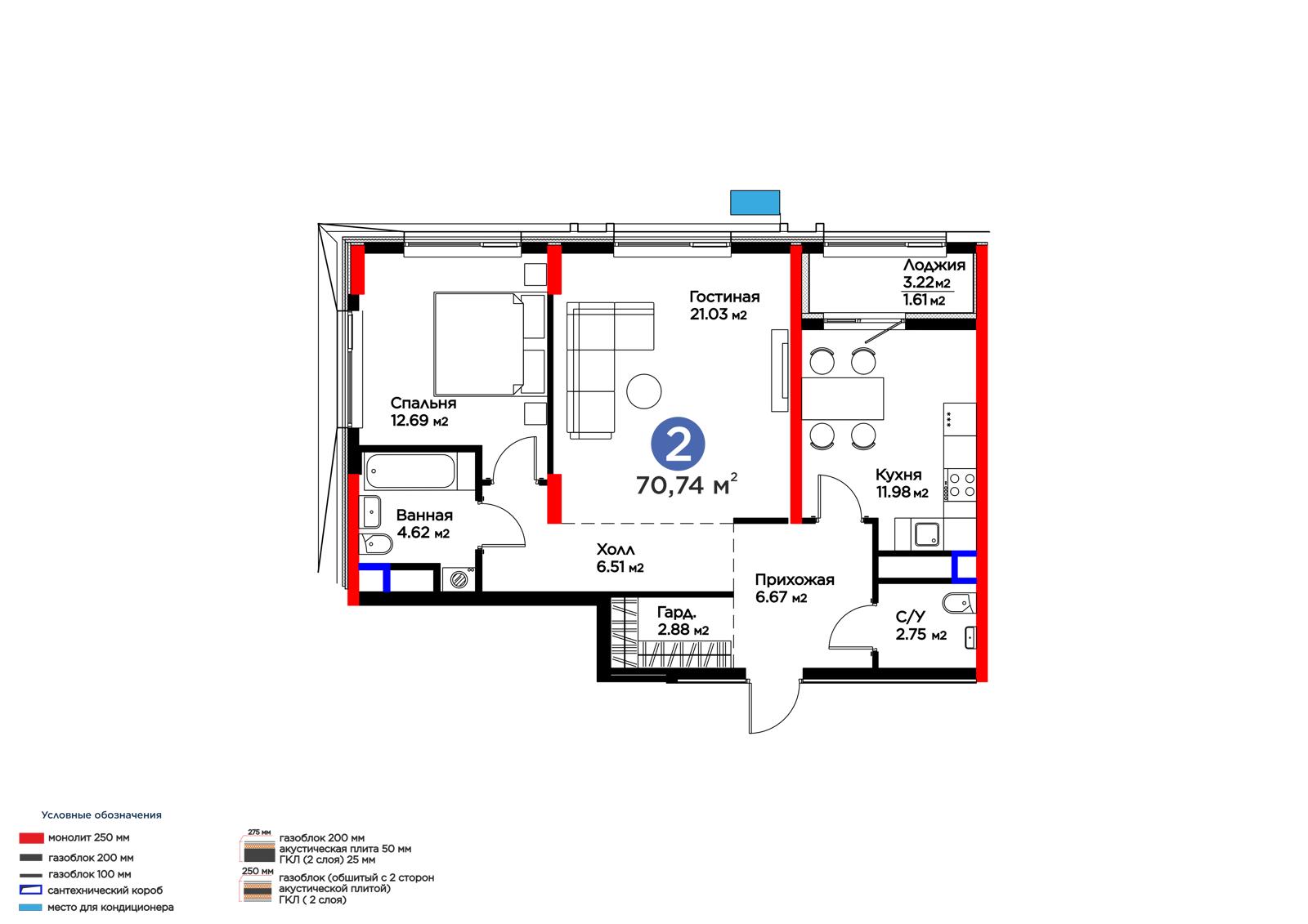 Площадь 70.74 м²