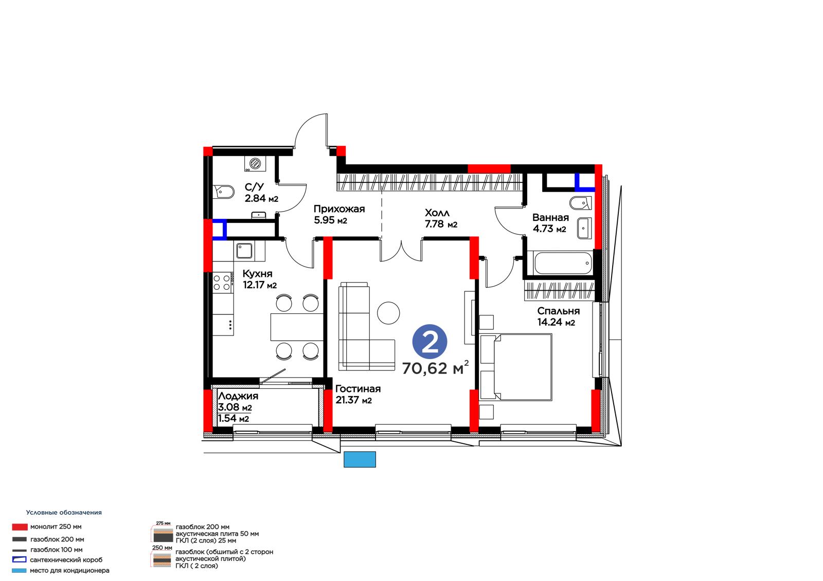 Продажа 2-комнатной квартиры в ЖК MOD Ultra, 70.62 м², г. Астана, ул. Хусейн бен Талал (31-я)