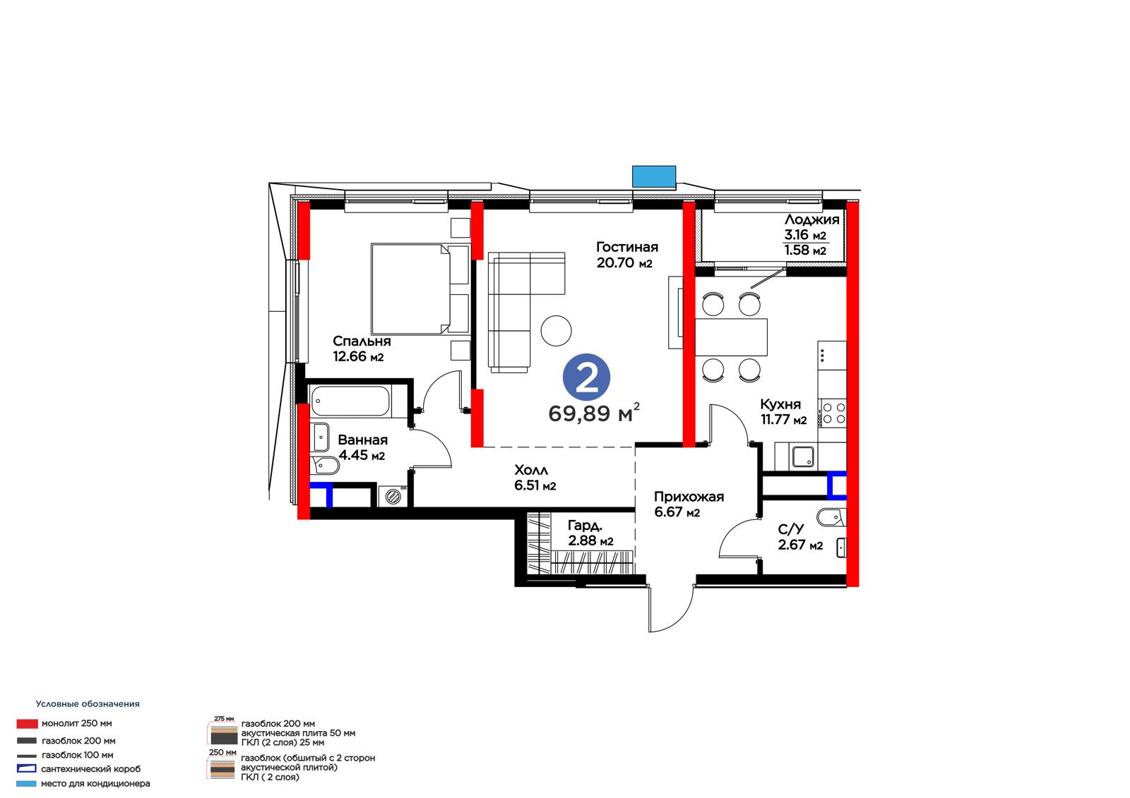 Продажа 2-комнатной квартиры в ЖК MOD Ultra, 69.89 м², г. Астана, ул. Хусейн бен Талал (31-я)