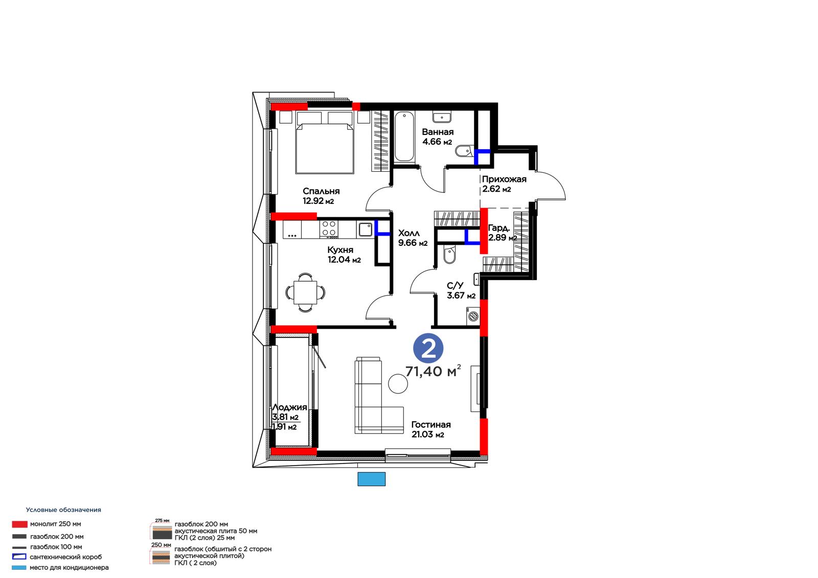 Продажа 2-комнатной квартиры в ЖК MOD Ultra, 71.4 м², г. Астана, ул. Хусейн бен Талал (31-я)