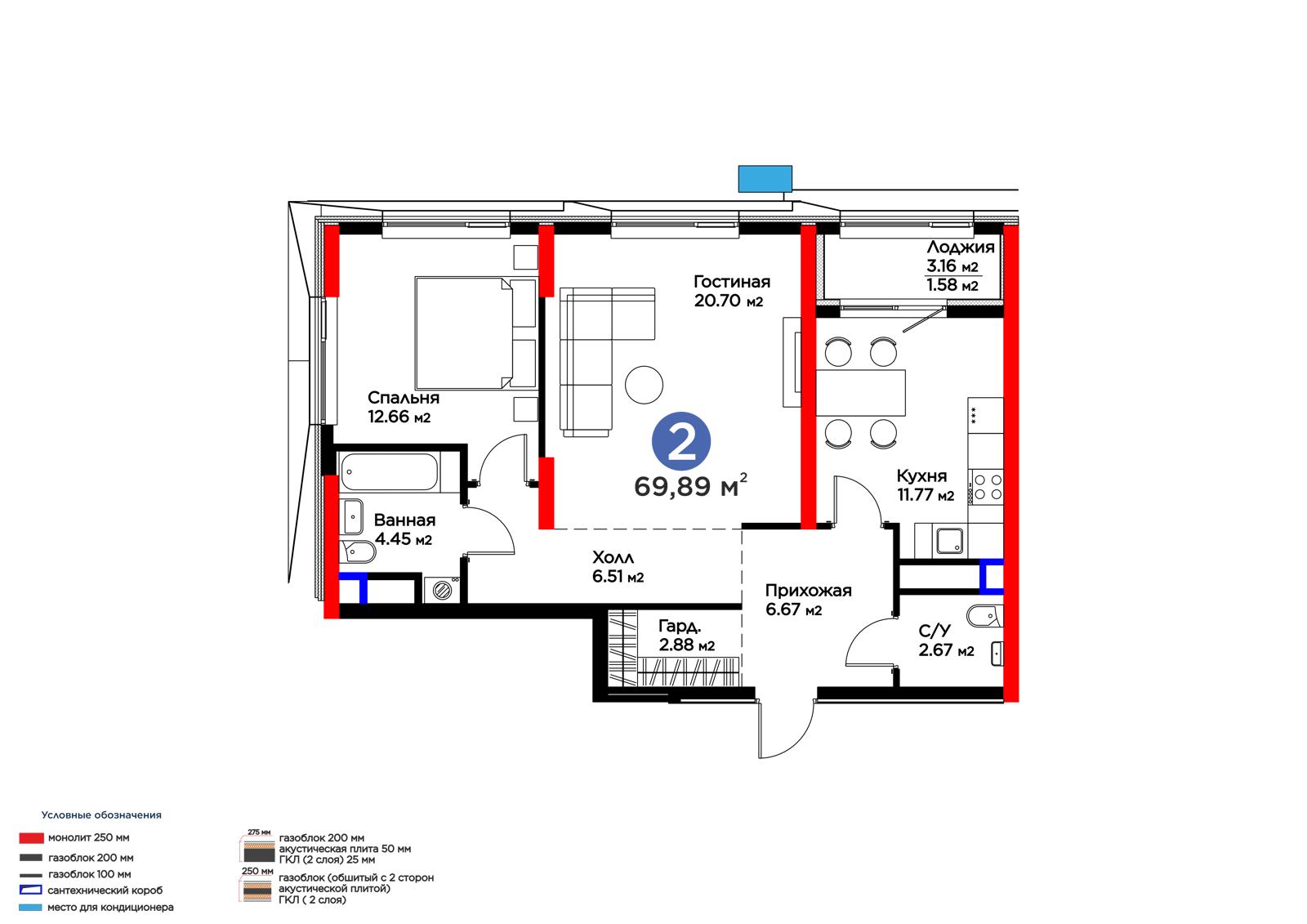 Площадь 69.89 м²