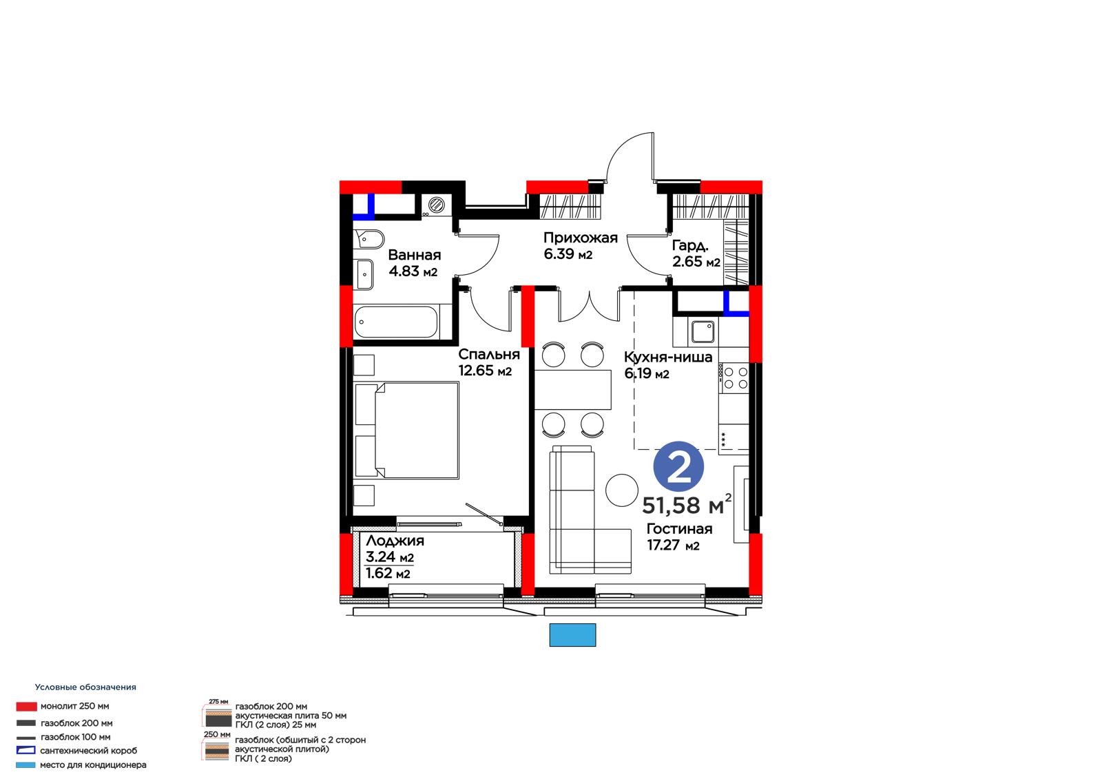 Площадь 51.58 м²